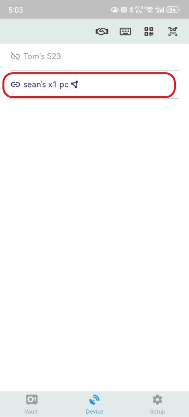 - In the device list, observe the color of the other party’s icon changing from gray to blue, indicating a successful connection.